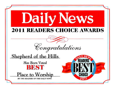 I have always wondered what would happen if the Daily News ever had a category for “Best Place to Worship” in their annual poll for Los Angeles. For some reason it had never been one of the questions listed. Well, for the first time ever they asked that question for 2011 and look what church came in on the top of the list? Drum roll…………… The 2011 Readers Best Choice for Best Place to Worship is SHEPHERD OF THE HILLS CHURCH. Results will be shown in the August 26th edition of the Daily News.