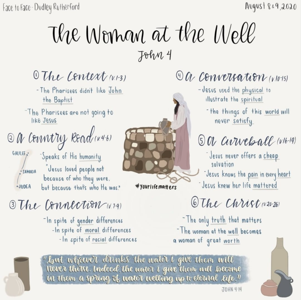 Jesus revealed that He knew her past and her pain, and it’s important to note that He will always talk to us about our sin—not to embarrass us—but to get us to turn from it so that He can point us to a better way of life. In spite of ours sins and failures, Jesus personally, wonderfully, lovingly cares deeply for you and for me, just as He cared for the woman at the well. She needed to know that someone truly valued her. Jesus went to Samaria purposefully and engaged in this conversation with her because she mattered to Jesus.
